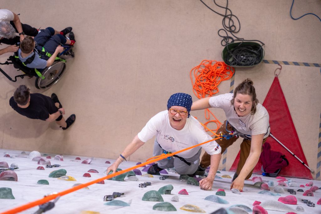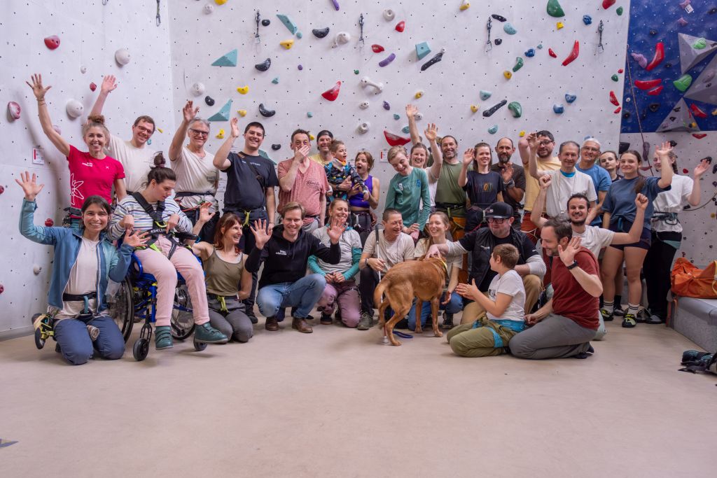 Ein besonderes Highlight war der Besuch von Linda Le Bon aus dem österreichischen Paraclimbing-Nationalteam, die gemeinsam mit ihrem Assistenzhund Buddy vor Ort war und interessierte Besucher*innen beim Klettern sicherte.