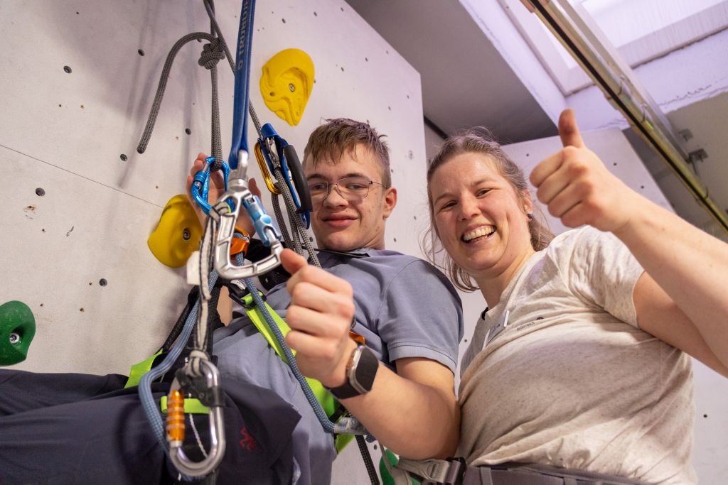 Speziell ausgebildete Trainer*innen hießen die Teilnehmer*innen willkommen, führten durch die Kletterhalle und informierten über die Edelweiss INKlettern Angebote.